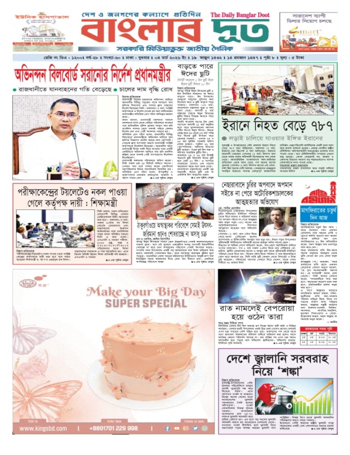 বুধবার, ০৪ মার্চ ২০২৬